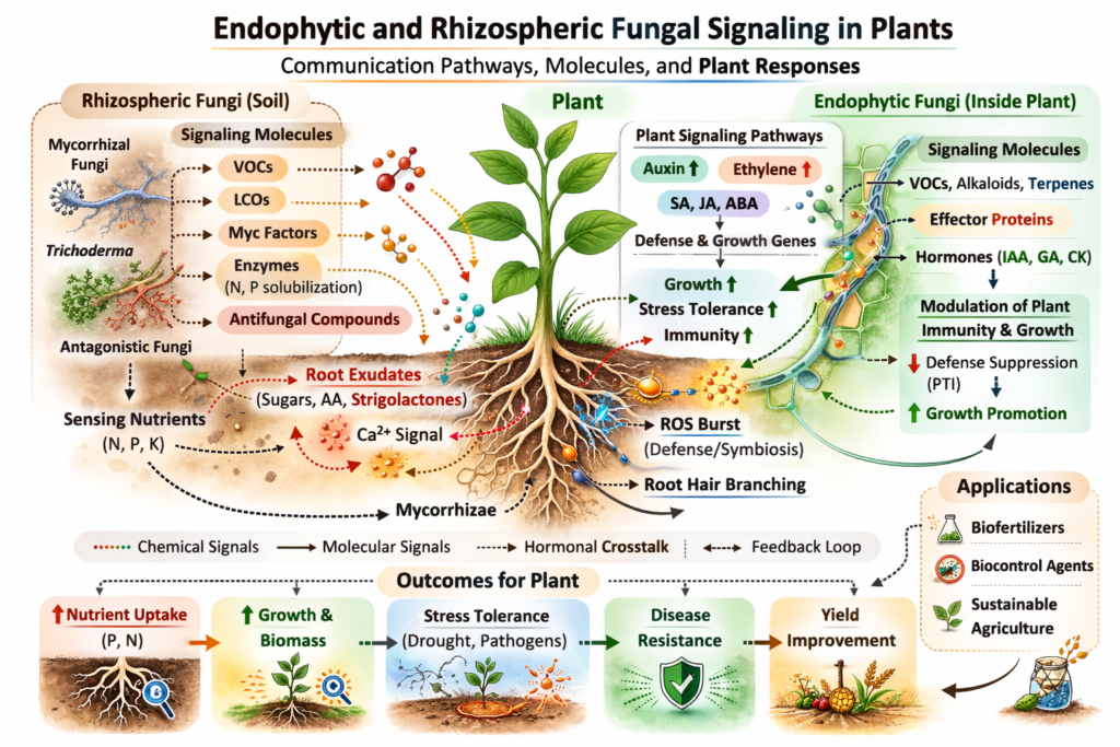 - Antagonistic signals: Rhizospheric fungi can inhibit pathogens via antifungal metabolites (e.g., Trichodermaproducing gliotoxin).